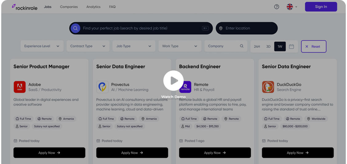 Navigate through the key IT specializations to quickly find active remote jobs and Armenia-based roles. Every listing is verified and updated daily, so you always see the most relevant opportunities.